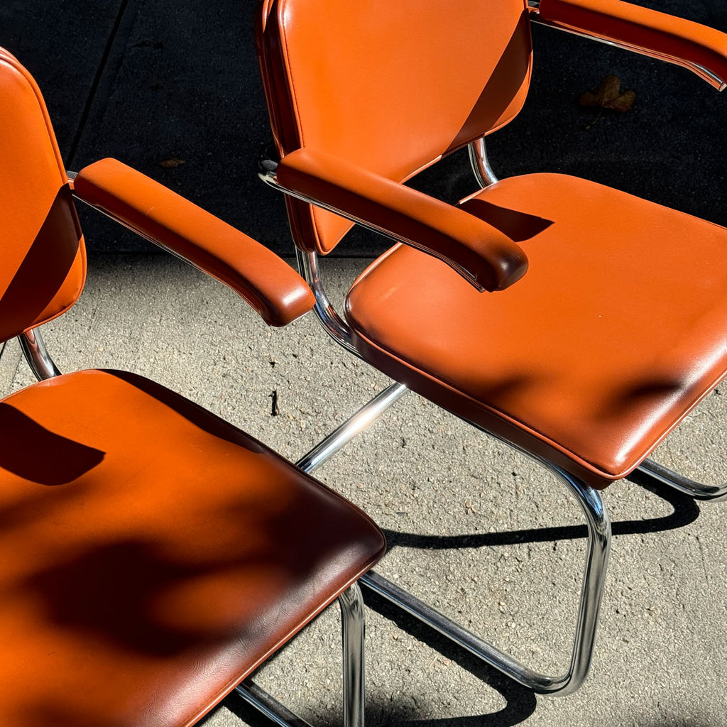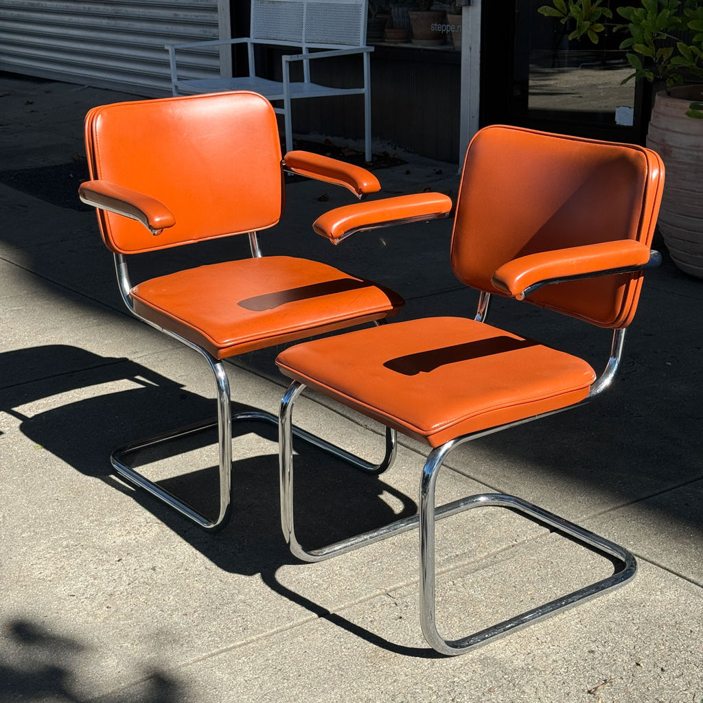 A pair of vintage S64 armchairs by Thonet. Featuring cognac leather upholstery.
