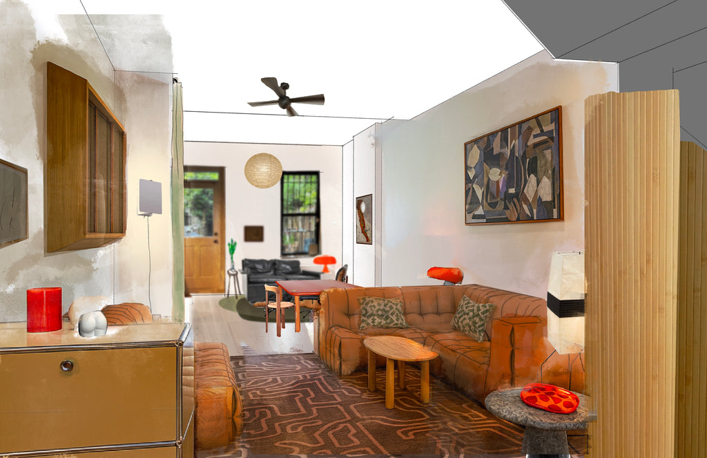 Our design of this duplex apartment is a celebration of iconic furniture and lighting. On the ground level, the dining room is flanked by two living areas that center comfort and functionality.